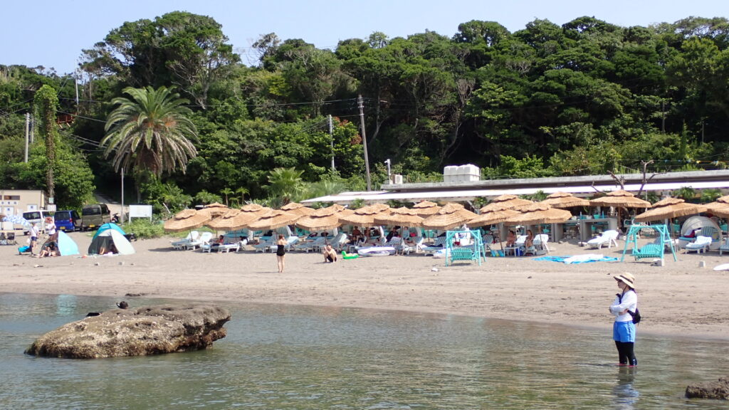三浦半島の隠れた名所(?)がその名も「カメハメハ大王の渚」である。これはお店の名前で、正式な地名は荒井浜海岸。駐車場から森の中の道を歩いて徒歩10 分、階段を下りた先にあるトロピカルな雰囲気の面白いスポットだ。海自体は普通のビーチと小さな磯なのでシュノーケリングにはあまり向いていない。ハワイと呼ぶにはちょっと設備の古さを感じさせるが、リゾートライクなサンラウンジャーやキャノピー・デイベッドに寝っ転がり、パラソル越しに海を眺めているとまあいいか、という気になるから不思議なもの。