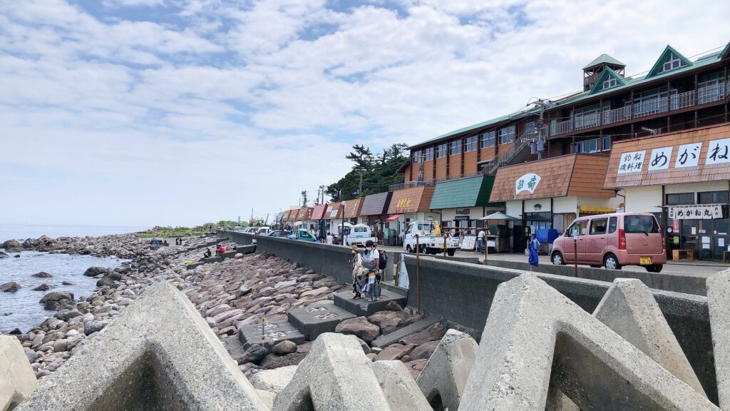 観光客向けの飲食店やカフェ、土産物屋が林立している他、リゾートホテルや民宿もある。民宿は電話で予約する。