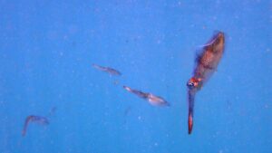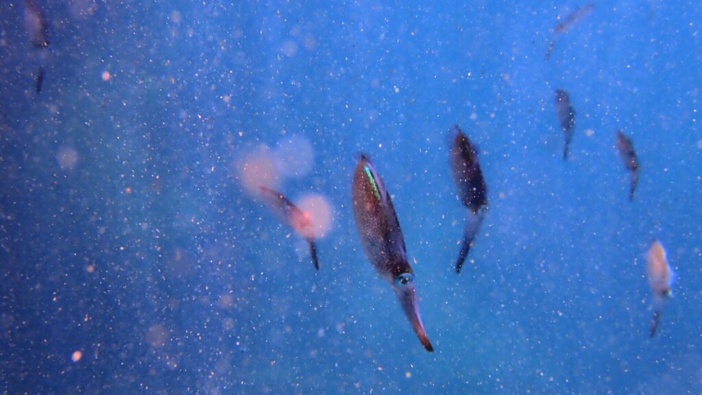 堤防で囲まれた第一漁港と比べて外界に面しているので、やや大型のブダイやメジナ、カンパチ(ショッコ級)のような回遊魚、小魚の群れなどを見ることができる。アオリイカの稚イカもよく目撃する。